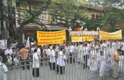 Tại trước cửa Nhà Thờ Lớn Hà Nội vẫn còn nhiều người người cầm băng rôn, khẩu hiệu ca tụng đức Tổng Giám mục Ngô Quang Kiệt, là người đã bay sang Hoa Kỳ nhưng cho đến nay vẫn chưa xuất hiện và cũng chưa đưa ra bất cứ một lời tuyên bố nào kể từ khi ngài rời khỏi chức vụ của mình.(SBTN)
